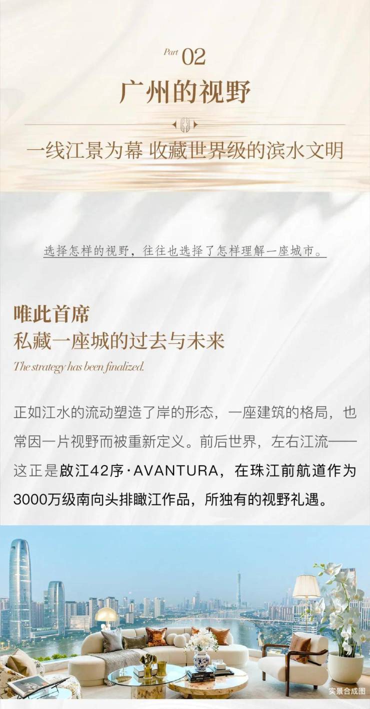 核心理念: 位于广州“珠江至贵一英里”的黄金岸线,定位为全球先锋生活方式的塔尖藏品,仅推出42席稀缺豪宅。