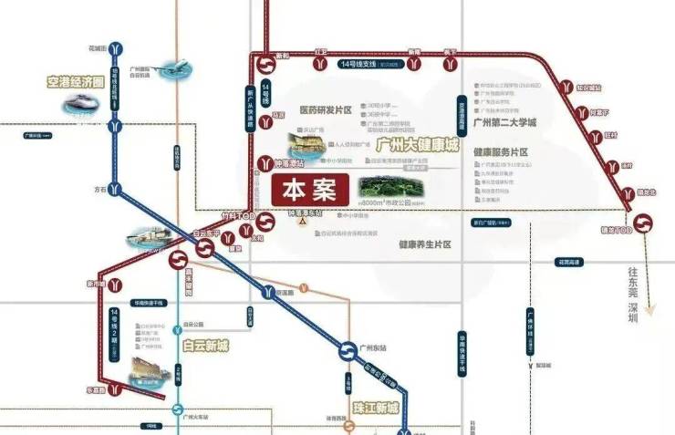 项目距离地铁14号线钟落潭站大概1000米,5站到嘉禾望岗,换乘2、3号线可直通白云新城和畅达广州全城。