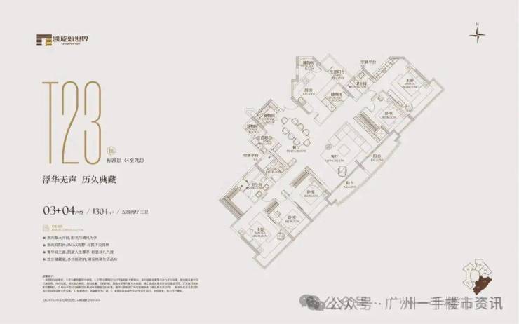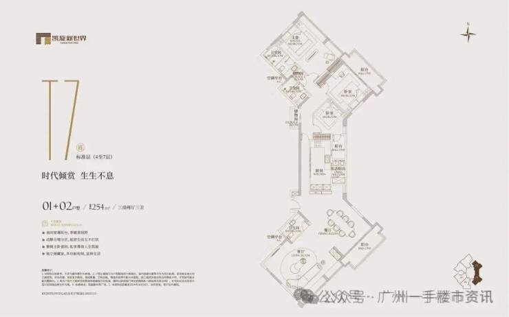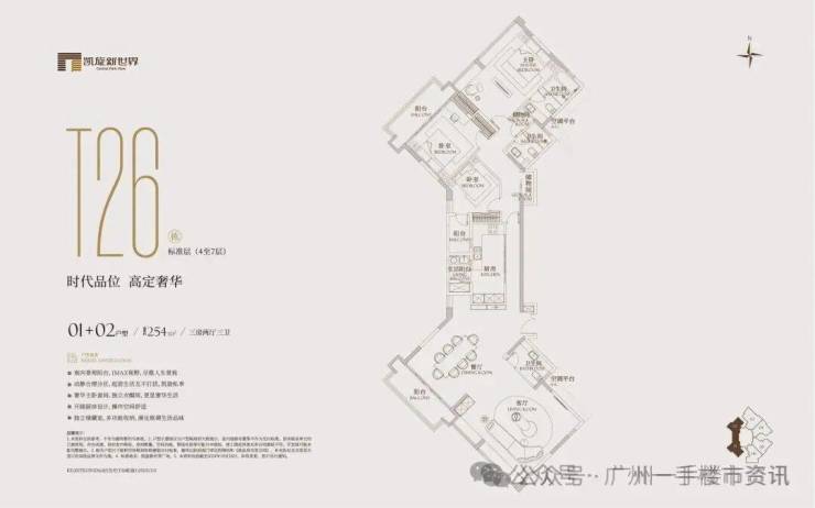 二期广粤观邸在售楼栋为T7、T10、T23、T26,可售户型涵盖132-172-254-277-304-835㎡产品(部分大面积户型全层/半层打通,双证出售),虽然二期景观比不上三期的南向江景,但可以一览凯旋新世界的超大园林景观,同时这也意味着新世界地产将全面清货退场。
