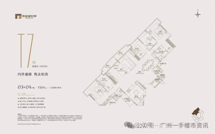 珠江新城凯旋新世界将推出项目最后的一手住宅内部保留单位,主要在售产品为三期的广粤尊府,三期可售户型涵盖北向195㎡三房、西南向173㎡、180㎡的三房和头排一线江景的245㎡、259㎡四房,以及280㎡和304㎡的五房楼王户型,三期广粤尊府住宅总共可售货量并不多。
