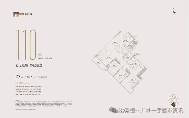 凯旋新世界三期广粤尊府将推出少量T17、T18、T21等楼栋住宅,三期T17和T18栋是广粤尊府楼王级别产品,大面积户型头排一览珠江无敌景观视野,如此顶豪可满足广州高净值人士的居住需求。