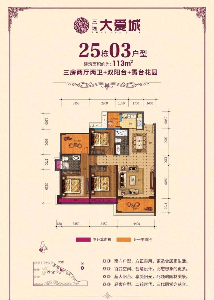 三远大爱城1-3期售罄交楼,4期10栋、25栋,26栋即将发售,户型83-141㎡3-5房。带装修9888元。