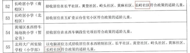 距离最近的俩小学一是长岭居小学(南校区),一是北师大广州实验学校(小学部)——根据《黄埔区2023年义务教育学校招生工作实施细则》,这俩学校均对口长岭社区符合政策的适龄儿童,是以不排除也会纳入招生范围。