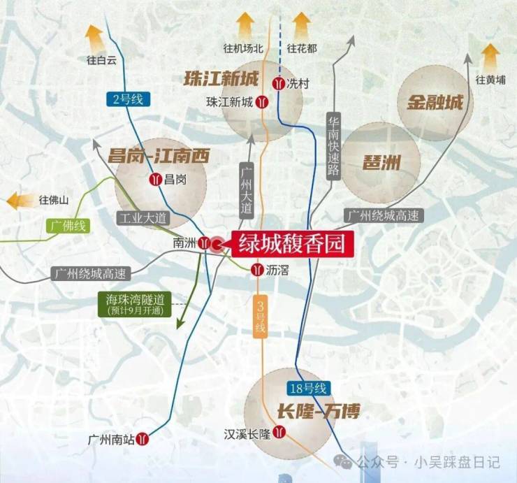 自驾方面,项目家门口就是南洲路,旁边还有广州大道和环城高速;通过在建的东晓南放射高架桥可快速接入内环路,未来还将对接海珠湾隧道,进一步提升跨江通勤效率。