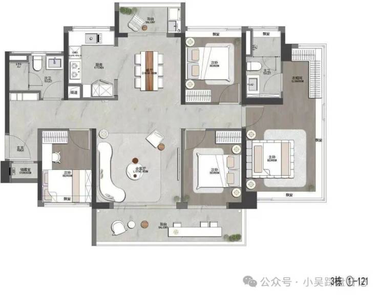 ◎面积段:约85-128㎡南向超高使用率新规三至四房