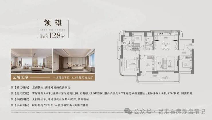 PART 05 奢艺环幕景观台新规产品涵盖128/138/183/238㎡,拥有超100%的使用率,匠心设计,确保极致的江景视野超100%实用率,户户270°转角窗,全广角瞰江视野,境藏滨江质感生活。