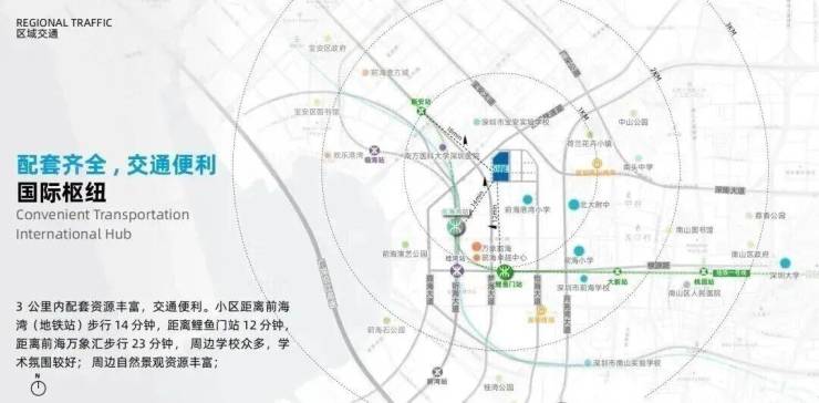 地块北侧临河,西面瞰海,临近在建前海国际枢纽中心,未来这里将汇集3条地铁线(1号线、5号线、11号线)与2条城际线(穗莞深城际、规划港深西部铁路)。
