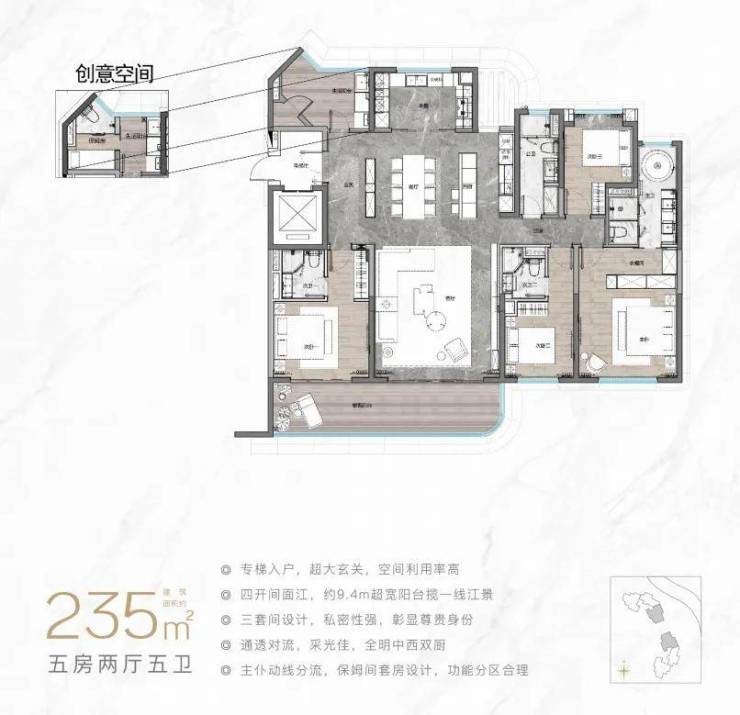 项目特色:集高端住宅、商业办公、高端酒店、滨江公园于一体的城市综合体