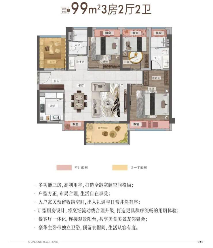 项目由山东健康集团开发,品牌实力雄厚,中国地产100强,开发经验覆盖全国12省市,打造过国家康居示范工程,置业保障高,确保品质交付和长期运营稳定。
