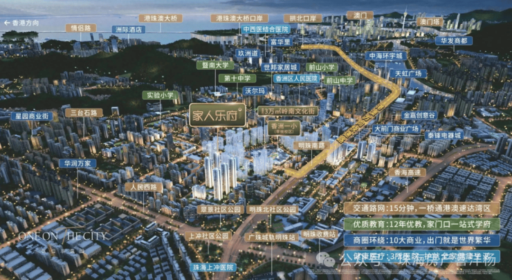 「山东健康.家人乐府」项目处于香洲的“前山南屏产业带”与“市级综合服务中心及迎宾路生态景观轴”中心区域,集主城产业辐射区、核心配套服务圈、生态景观带多重利好迭加,于此坐享未来城市发展的板块价值。