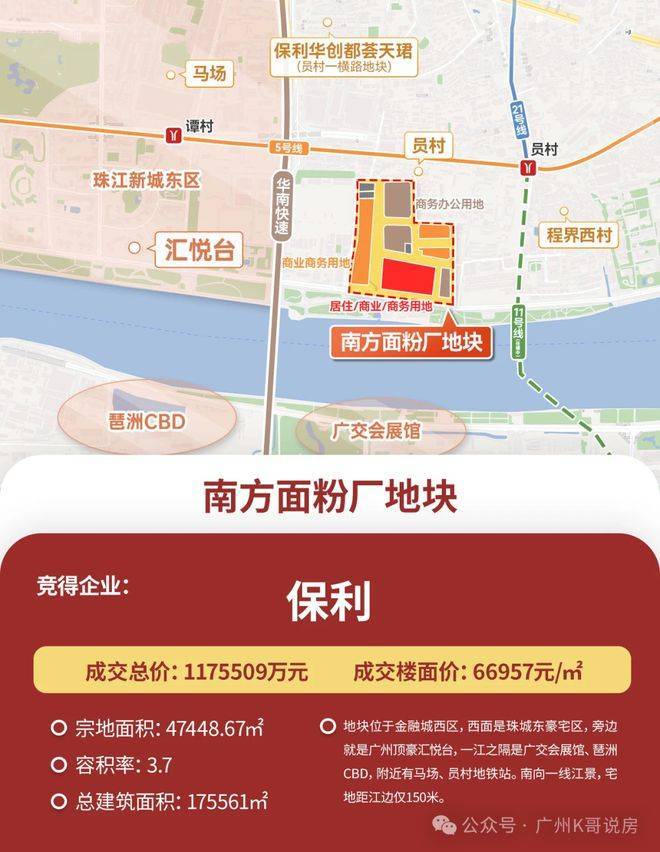 面粉厂地块位于临江大道旁,与珠城直线距离仅约600m;隔着净水厂,就是广州豪宅标杆汇悦台,二手成交单价一度超30万/平。