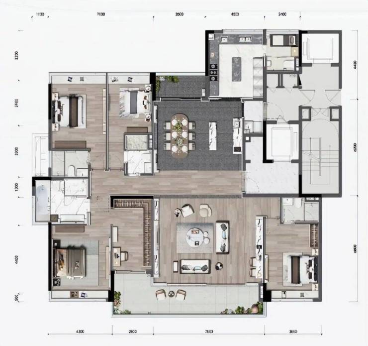 项目均为建面经200-350㎡纯粹业主圈层大平层,三梯两户设计,实现专梯专户享受,双阳台观景,开阔客餐厅、中西双厨、3.5米PLUS层高,将生活尺度大大拉满!(部分户型)