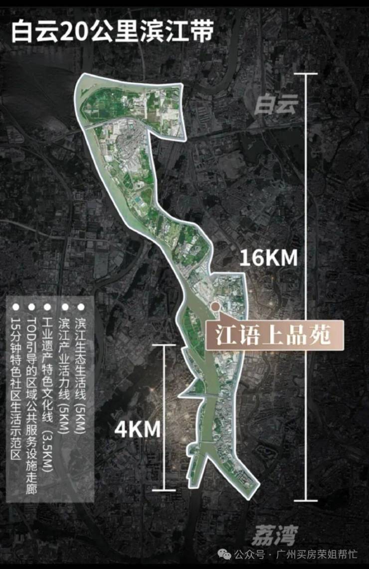2023年广州发展聚焦白云,广州市规划院编制的《白云区珠江沿岸高质量发展实施规划》指出:白云滨江岸线将高标准打造20公里的高量发展示范带。20公里江岸将兴建13大滨江公园,其中槎头滨江公园就在项目楼下。