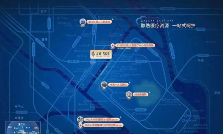 5分钟可达南沙妇女儿童医疗中心,3公里内南沙中心医院、中大附属口腔医院、中大附属第一医院聚集。