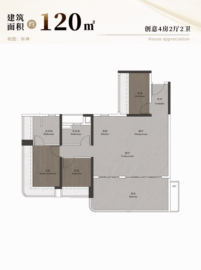 约120平四房,进阶为观园三代居大宅:
