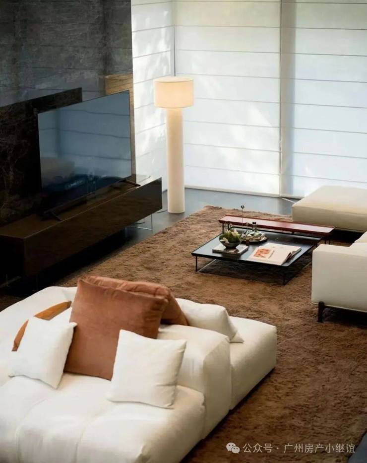 全幅落地玻璃串联山色,270°瞰景界面与窗外绿意虚实相映,如同画轴慢慢展开。空间与艺术在此完美融合,共同缔造奢华而雅致的生活美学。Poliform组合沙发以其简约而典雅的设计风范,lago艺术背景柜的巧妙点缀,更为这方天地增添一抹独特的艺术气息。
