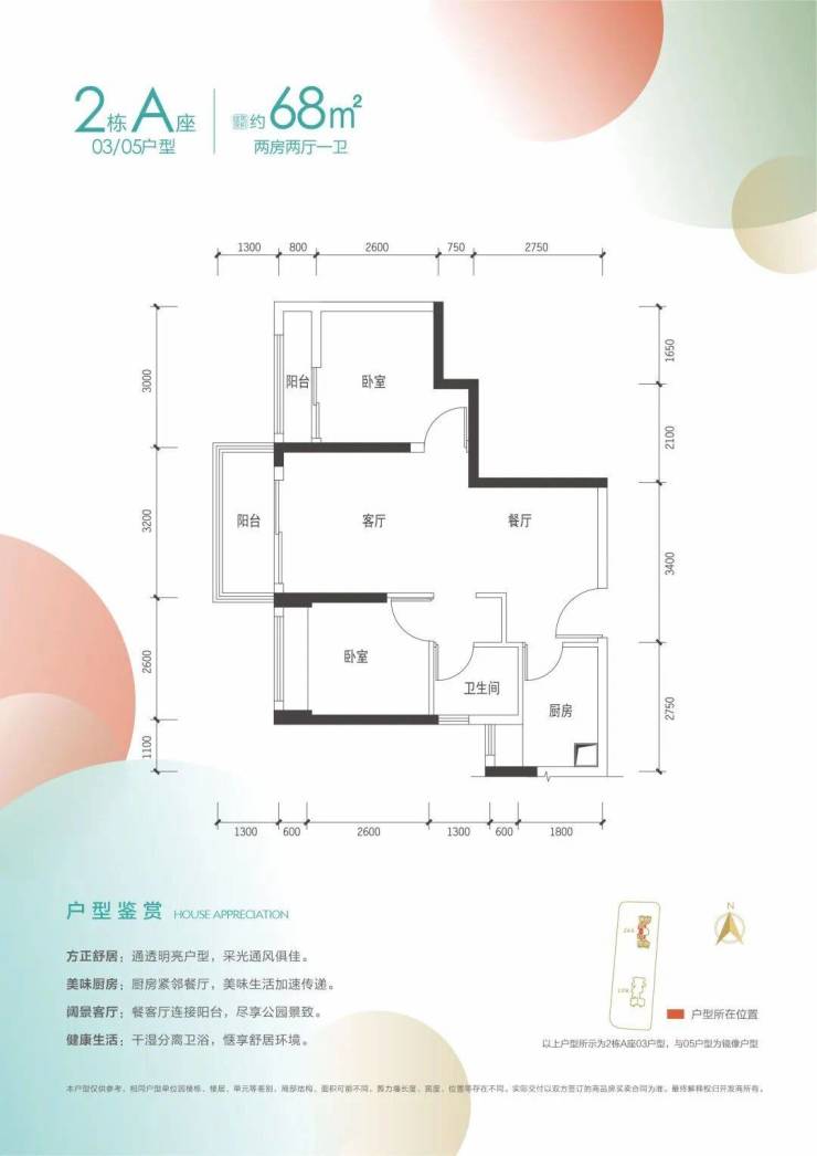 建面约68㎡2房1卫
