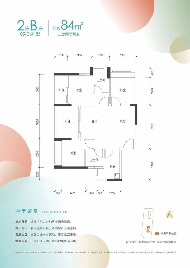 建面约84㎡3房2卫