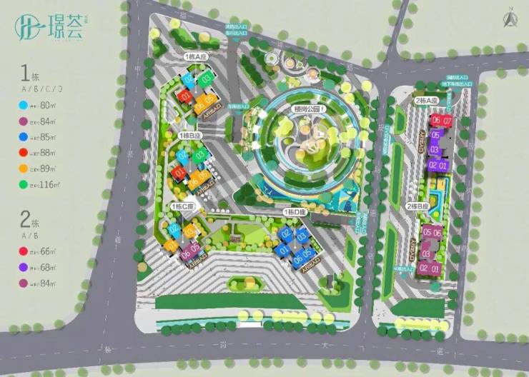 面积段:约66-116㎡2-4房公园住区