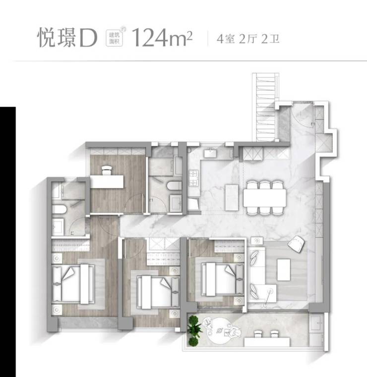 【悦璟D户型 建面约124㎡】