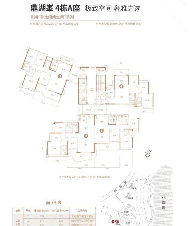 项目推出约 83 - 247㎡的 2 至 6 房高层洋房,户型多样,满足不同家庭结构的需求。以约 126 平三房、约 138 平三房、约 169 平四房、约 170 平四房等户型为例,户型设计注重空间的合理利用与居住的舒适度。3.15 - 3.3 米轩朗层高,开阔大气;至宽 11 米阔景阳台,无遮挡视野,推窗揽景,时刻将阳光美景引入室内;板房设计精致,充分展现了高品质生活的格调,为业主打造舒适且高品质的居住体验。