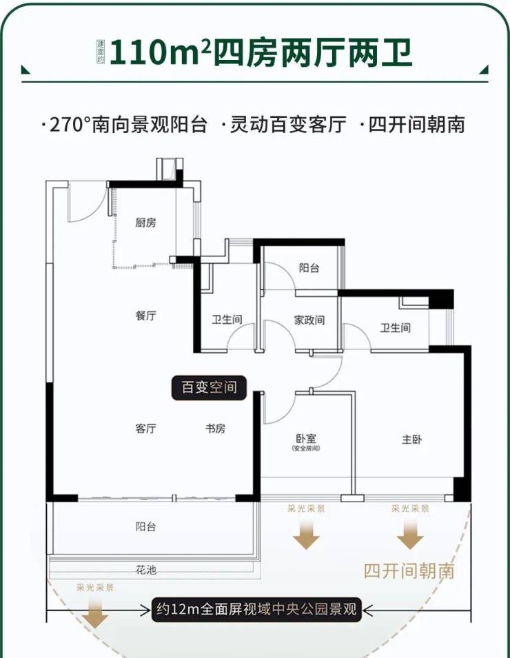 项目还做出了南偏东20°的科学扭转,使得户户望公园,一线公园景观面达约280米。