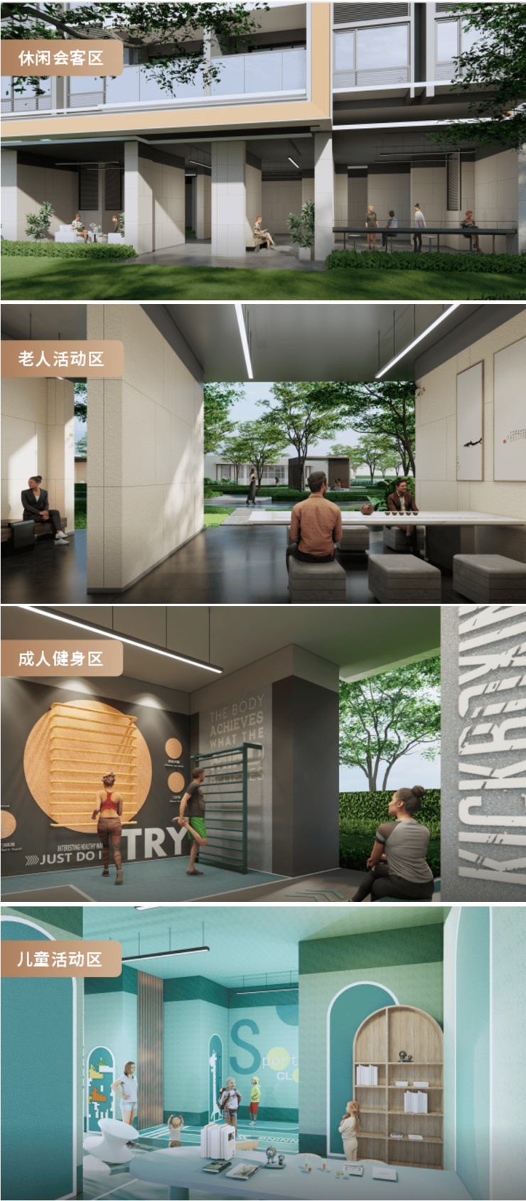 架空层泛会所:打造休闲会客、儿童活动、老人活动、成人健身等功能在内的全龄欢聚社区。