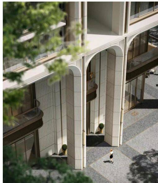外立面设计:gad 大师团队以曼哈顿现代美学为形,广府文化为魂,打造无界镜幕、鎏金冠冕、骑楼底座等美学符号。建筑底座将广州骑楼弧形拱券以斯卡帕叠级工艺进行现代转译,融入岭南风骨。