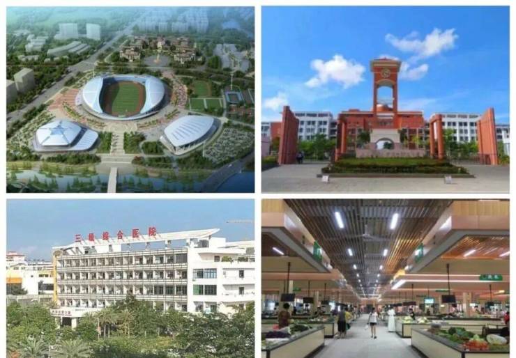 文化体育广场、大型综合商超、东星农贸市场、万宁市人民医院(综合三甲);