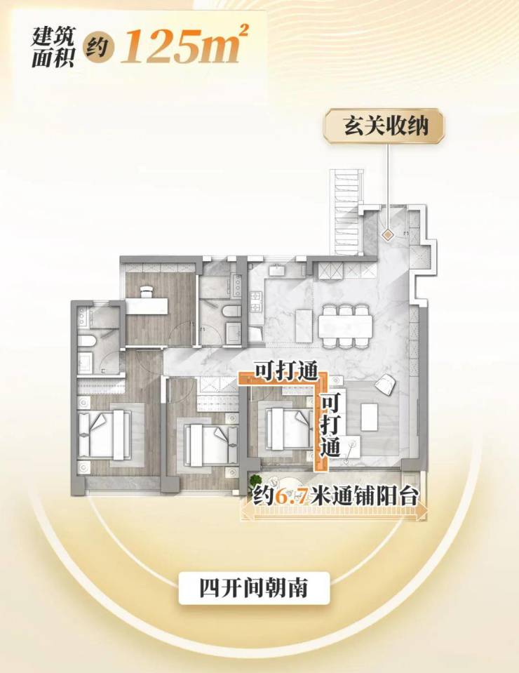 项目在售的一二期,包括约110-300平不同面积段户型,都是四房设计,多开间朝南,适配刚改、改善等不同买家。