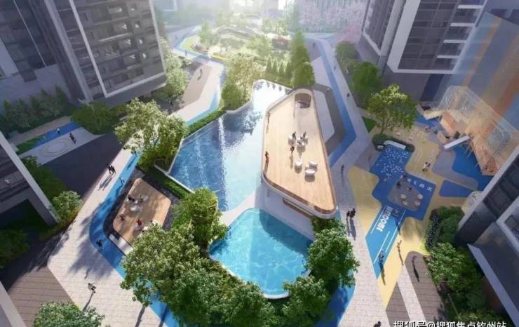 多元交互园林:空中运动花园、全龄亲子双游泳池、环氧跑道、稚趣IP乐园、城市会客厅等,亲子、社交、远动一应俱全;