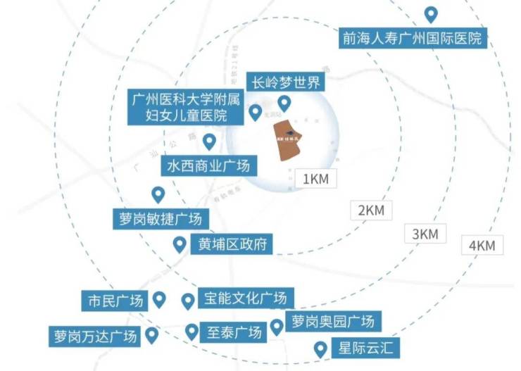 周边有萝岗万达广场、至泰广场等商业体,未来还有约29万㎡敏捷科技创新综合体(建设中)、约8万㎡长岭梦世界(建设中)等商业项目。