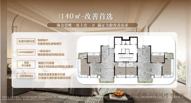 作为琶洲CBD的入门级产品,约120㎡户型却做到了专梯入户和大四房,兼顾了私密性和空间感。
