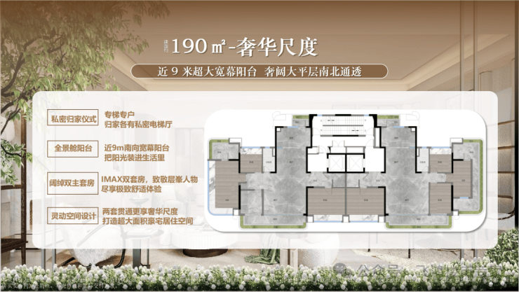 约190㎡户型将舒适度推向极致,特别是其总统级主卧套房的设计。