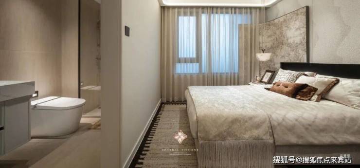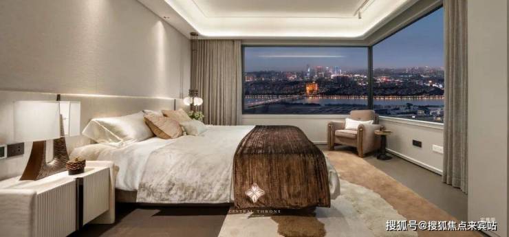 约31㎡超阔总统级主卧,以堪比星级酒店的空间尺度,为居者打造私属的奢享领地。约13.7m四面采光设计,赋予空间全天候的自然光影变幻,成就了名副其实的“360°环幕瞰景”体验。于此,城市日夜繁华与江岸静谧风光皆成私藏。高奢私属衣帽间的精心配置,更是为层峯生活量身定制,让居者每一件服饰都能得到妥善安放。