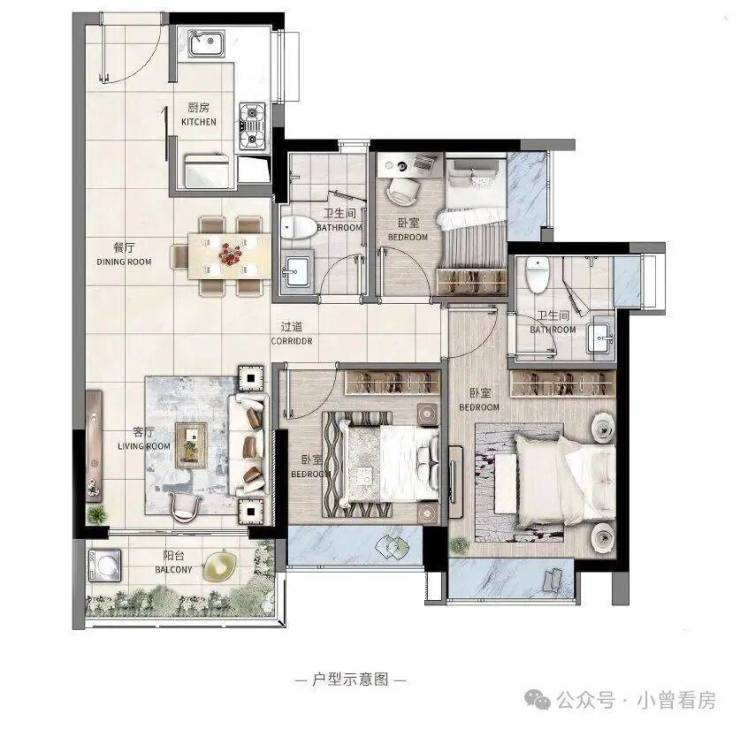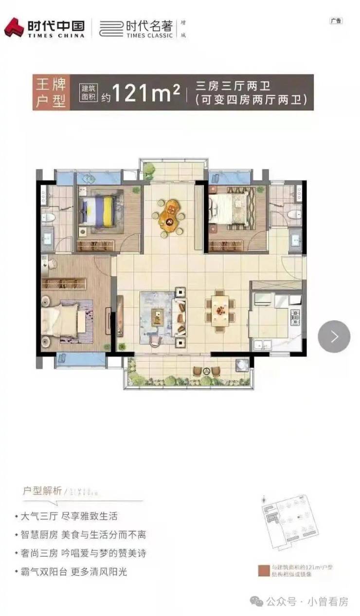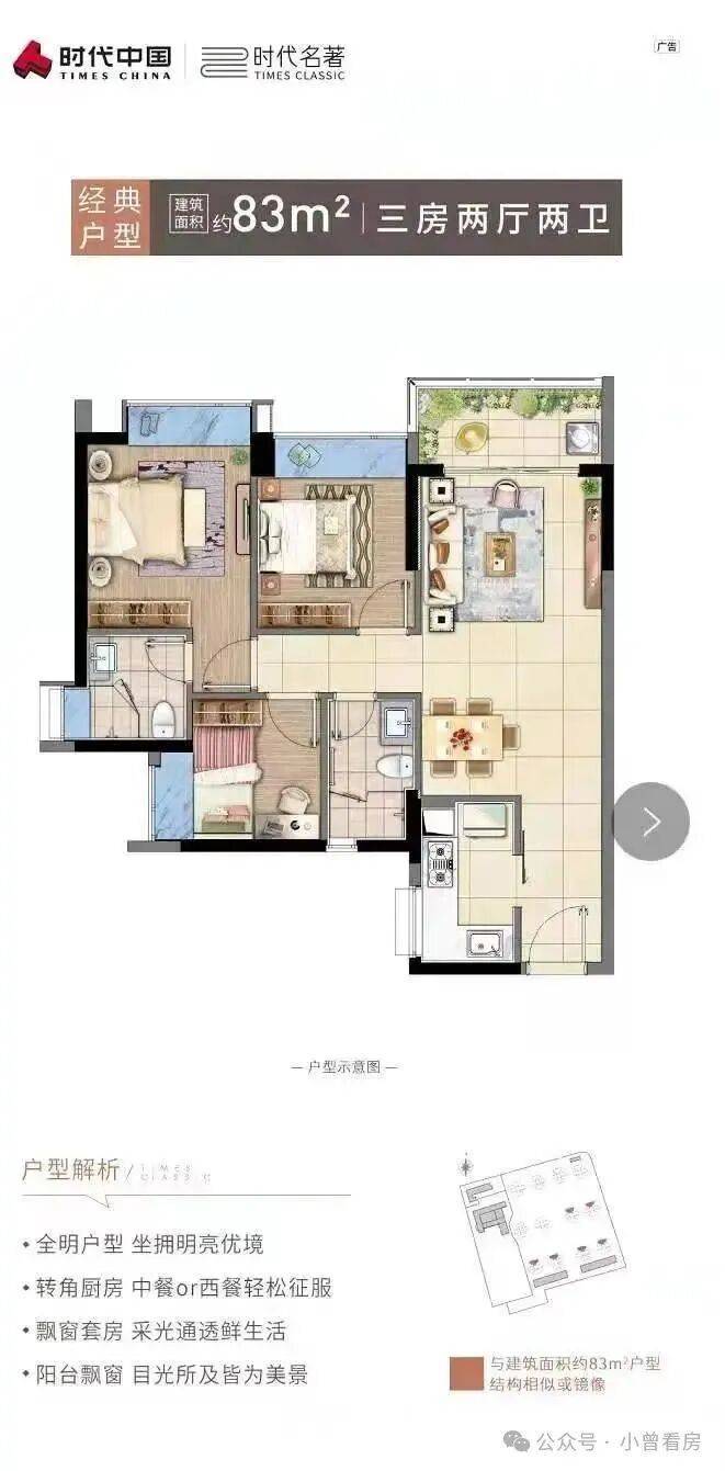 产品涵盖了77~121㎡多种户型,装修标准为高品质装标,20+年深耕大粤湾,时代更懂广东人。