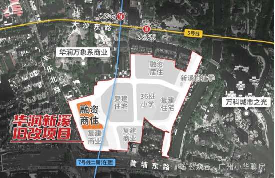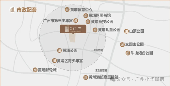 北面一路之隔是原黄埔区政府,直线约600米到保利中央公馆、黄埔体育馆;东面是万科城市之光,它就是位于惠润广场正对面的新溪旧改