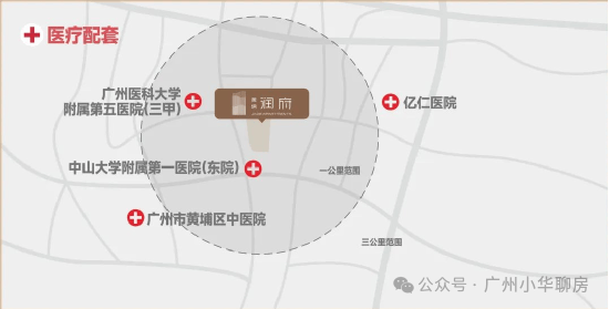 2所三甲医院:中大附属第一医院(三甲)约500米,广医大附属第五医院(三甲)约1.2KM