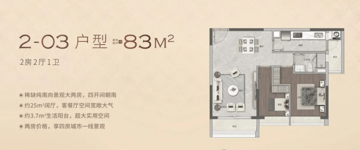 越禧府2号楼03户型83㎡- 超宽楼距四开间南向两房