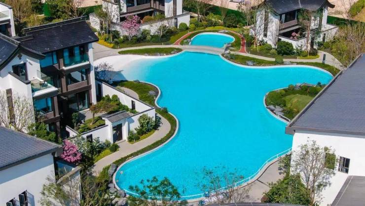 湖蝶湾·瀚园,占地12.6万平方米(189亩),总计规划了233套合院,户户朝南,并且温泉入户。