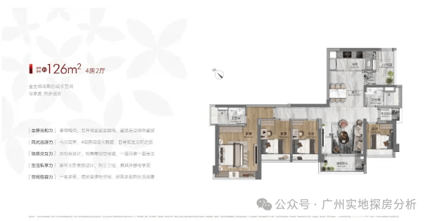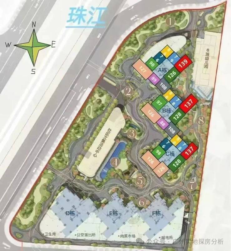 整个项目只有6栋楼,建面约76-89㎡爆款三房、约98-108㎡性价比之王四房、约126-139㎡江景大平层。