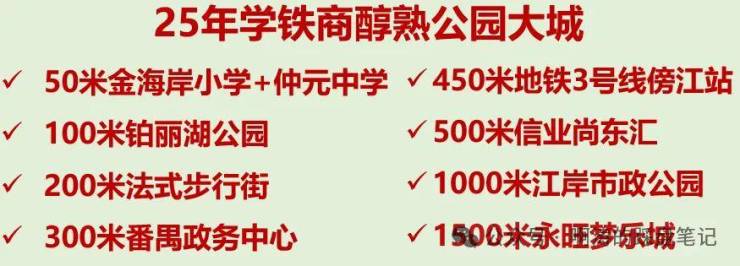 ② 千亩生态成熟品质大城:25年成熟运营,法式风情步行街、仲元中学、金海岸实验小学、傍江地铁等配套已全部兑现