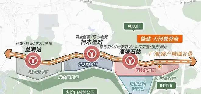 未来片区打造3.8公里广汕路产城融合带,形成高塘石、柯木塱、龙洞三大TOD发展中心,高塘石规划综合发展区及宜居社区。