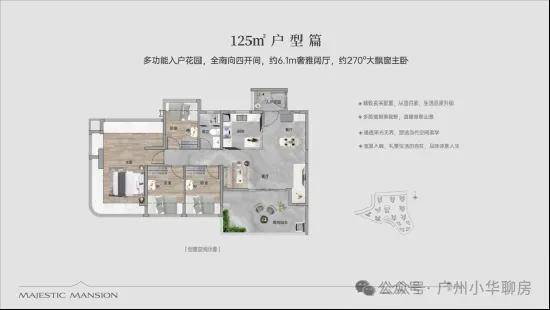 【80㎡三房2厅2卫】:东南向,使用率107%,四开间南向,12.6米超大面宽,主卧270°弧形玻璃幕窗。