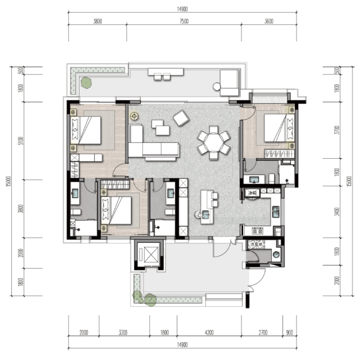 ·独立三卧:独立分布,私密性良好