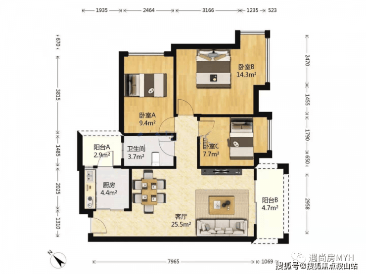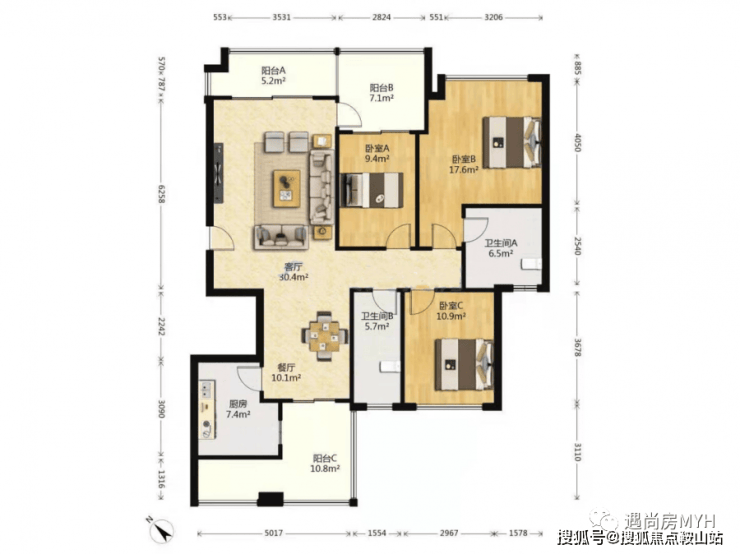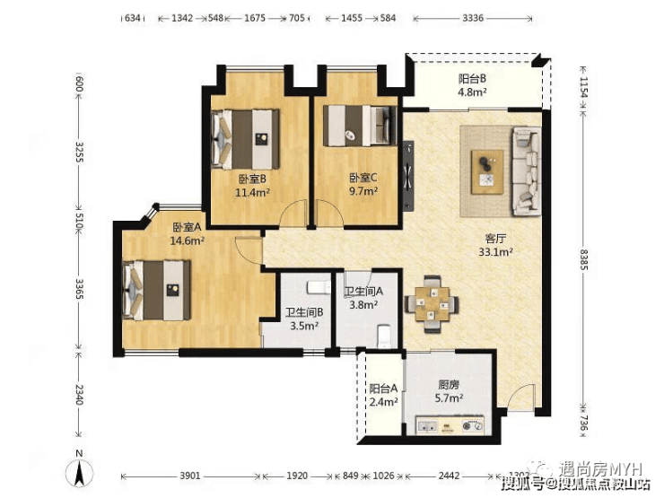90㎡ 3房 ( 紫金园和紫荆雅园畅销)