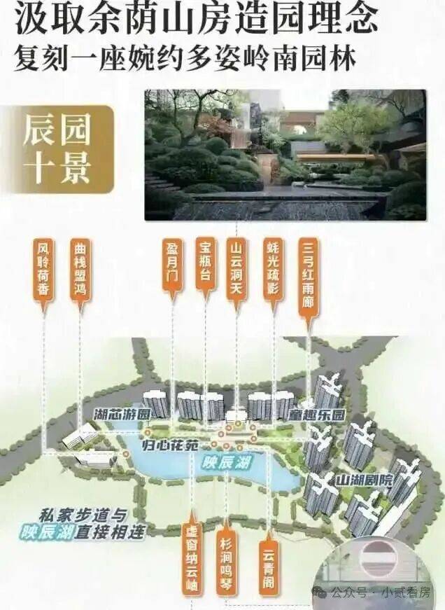 项目汲取余荫山房造园理念,采用“缩龙成寸”的设计理念,以水居中,环水建园,打造了「辰园十景」。