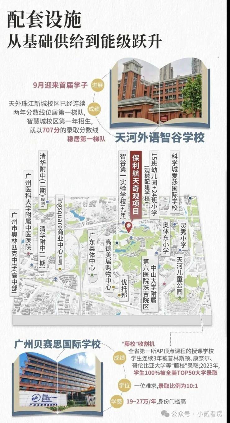 天外智谷分为两个校区,越秀观樾配建24班小学;缦云广州配建的九年制学校(18班小学+27班中学),今年9月份就会开学。