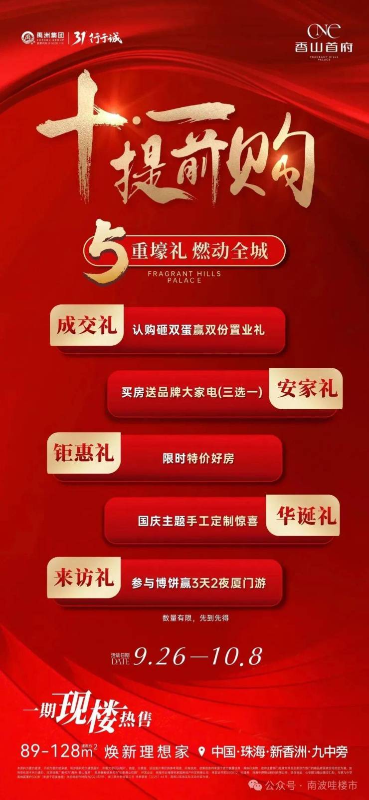禹洲・香山首府:新香洲现房在售建面约89-128㎡,9.26-10.8推5重好礼,到访博饼赢厦门3天2夜游