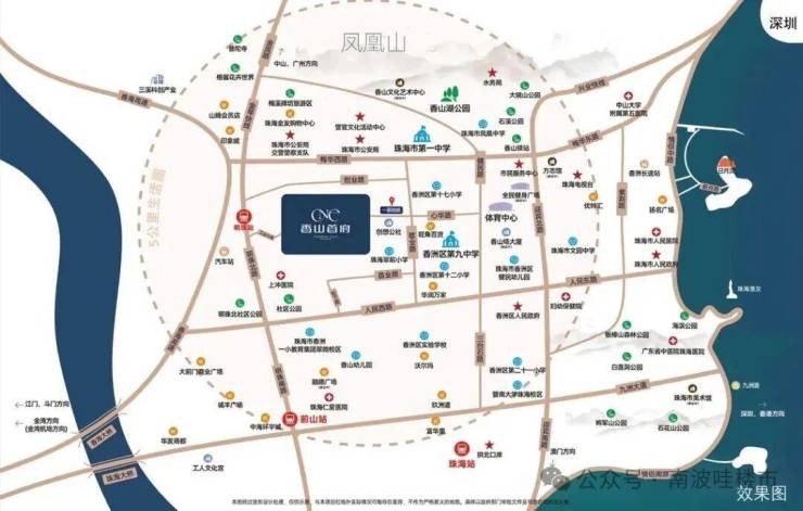 世界向湾,珠海崛起。香洲区,路桥直通港澳,载入珠海政治、经济、科技、文化中心能级背景,战略地位举足轻重。新香洲,背靠香山文化起源地--凤凰山,凝练珠海高密度配套资源、汇集高端高知人才,纵贯城市过去、现在、未来的价值热土。